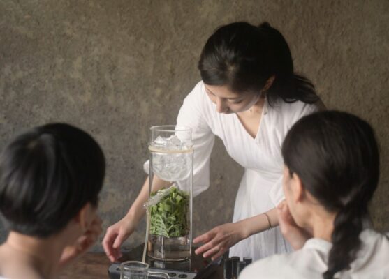 当スクールでは精油の知識だけでなく、講師が育てたハーブの蒸留体験などを通して植物を知る事にも重点を置いています。
